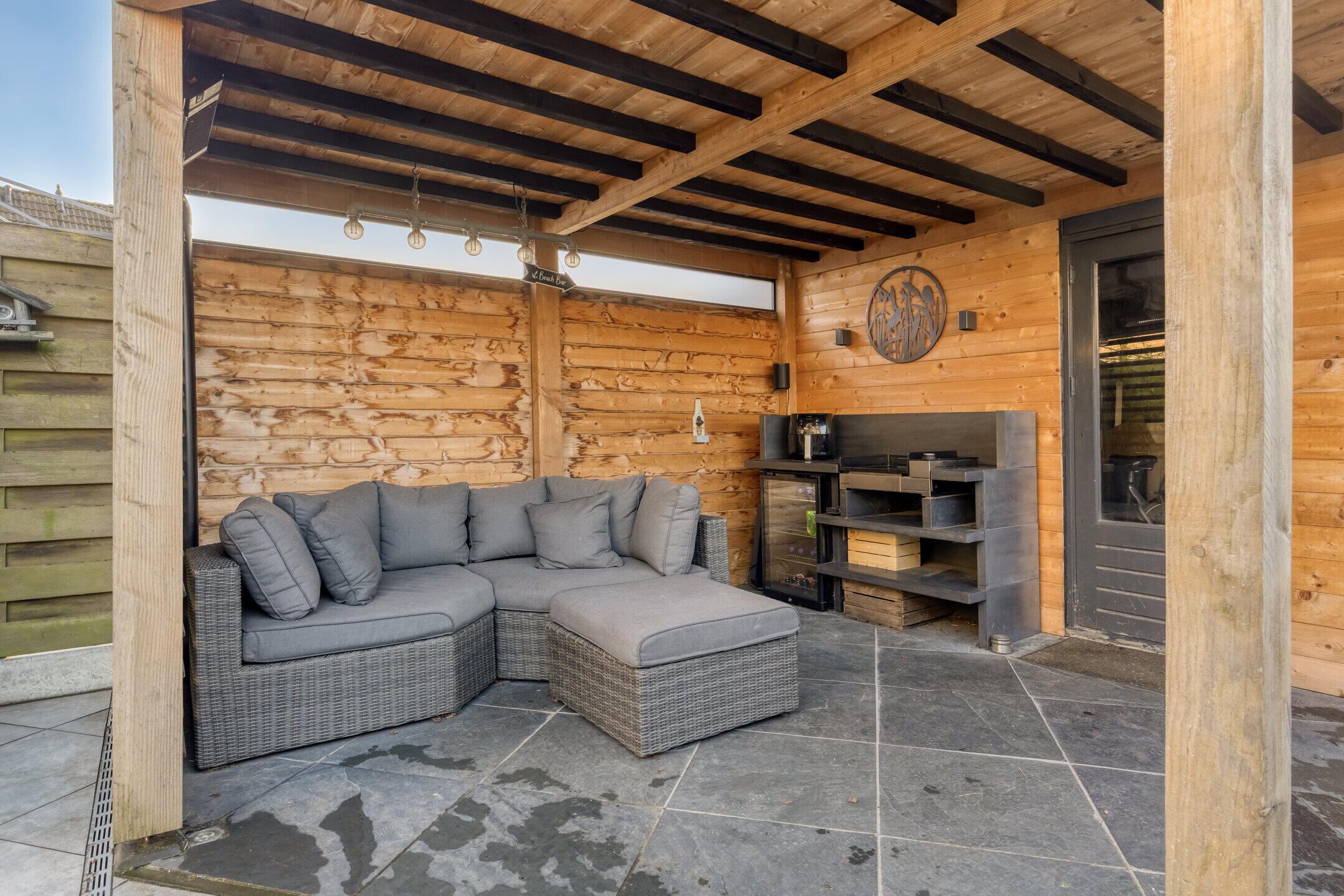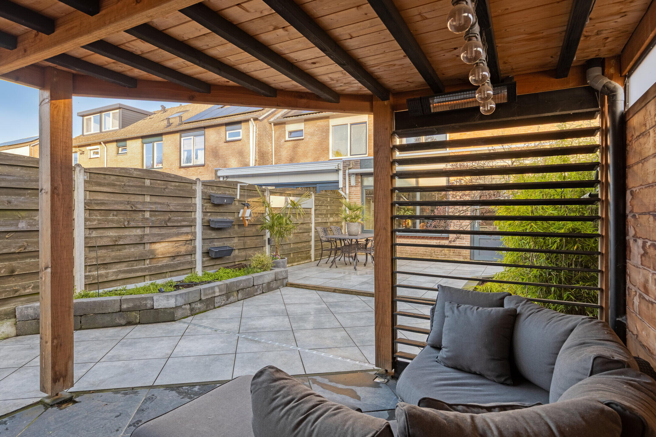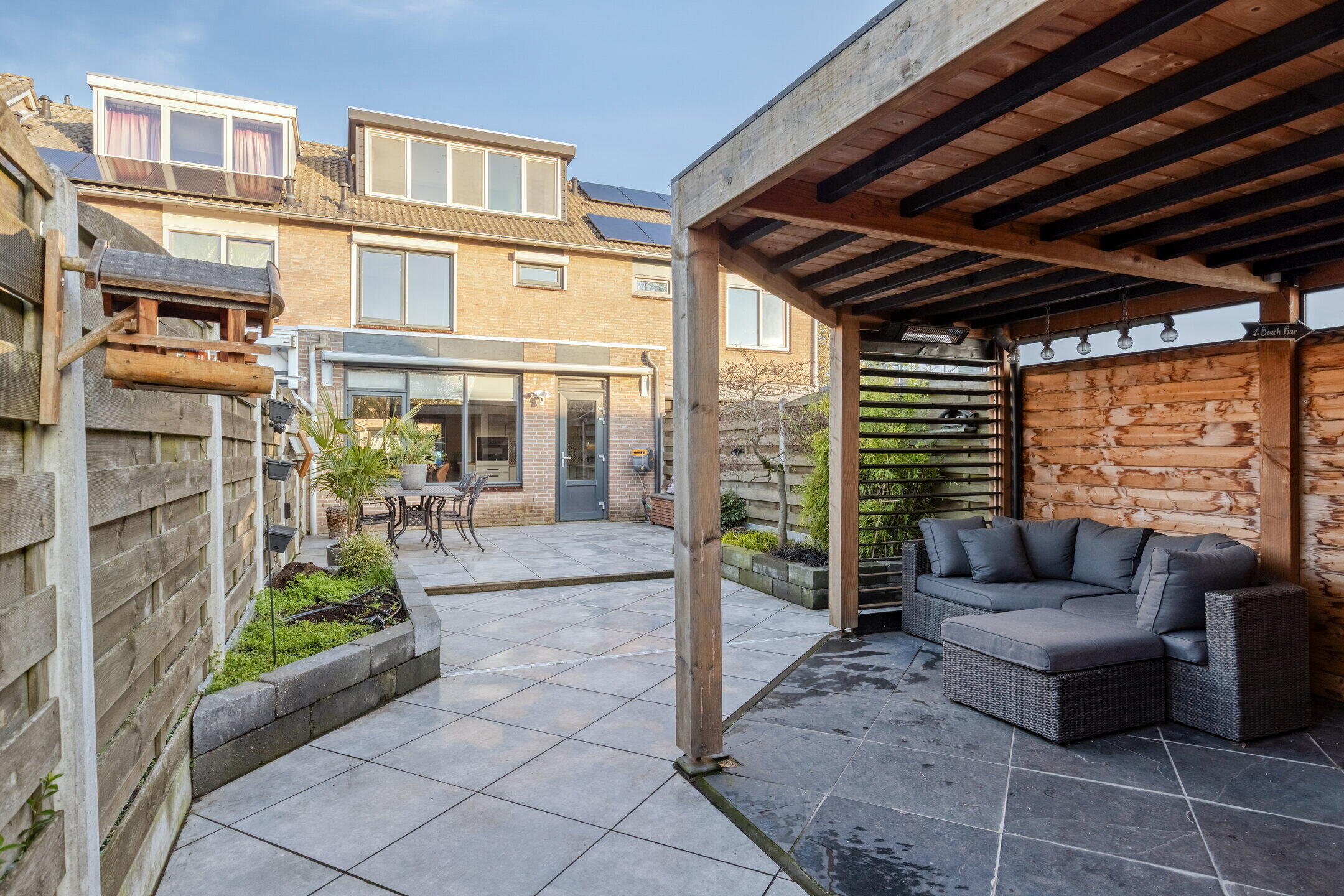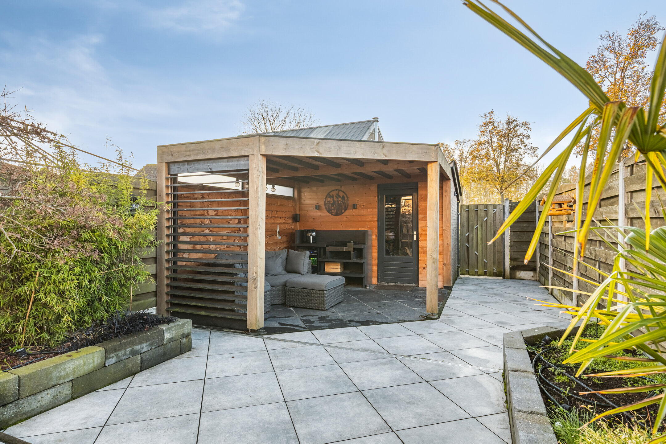Wat een heerlijke tuin! Deze is netjes aangelegd met zowel groen als bestrating en biedt een prachtige overkapping — perfect voor lange zomeravonden of knusse herfstdagen op de loungebank. Achter in de tuin vind je nog een extra berging voor fietsen of tuingereedschap. De achterom maakt het helemaal af: praktisch en comfortabel.