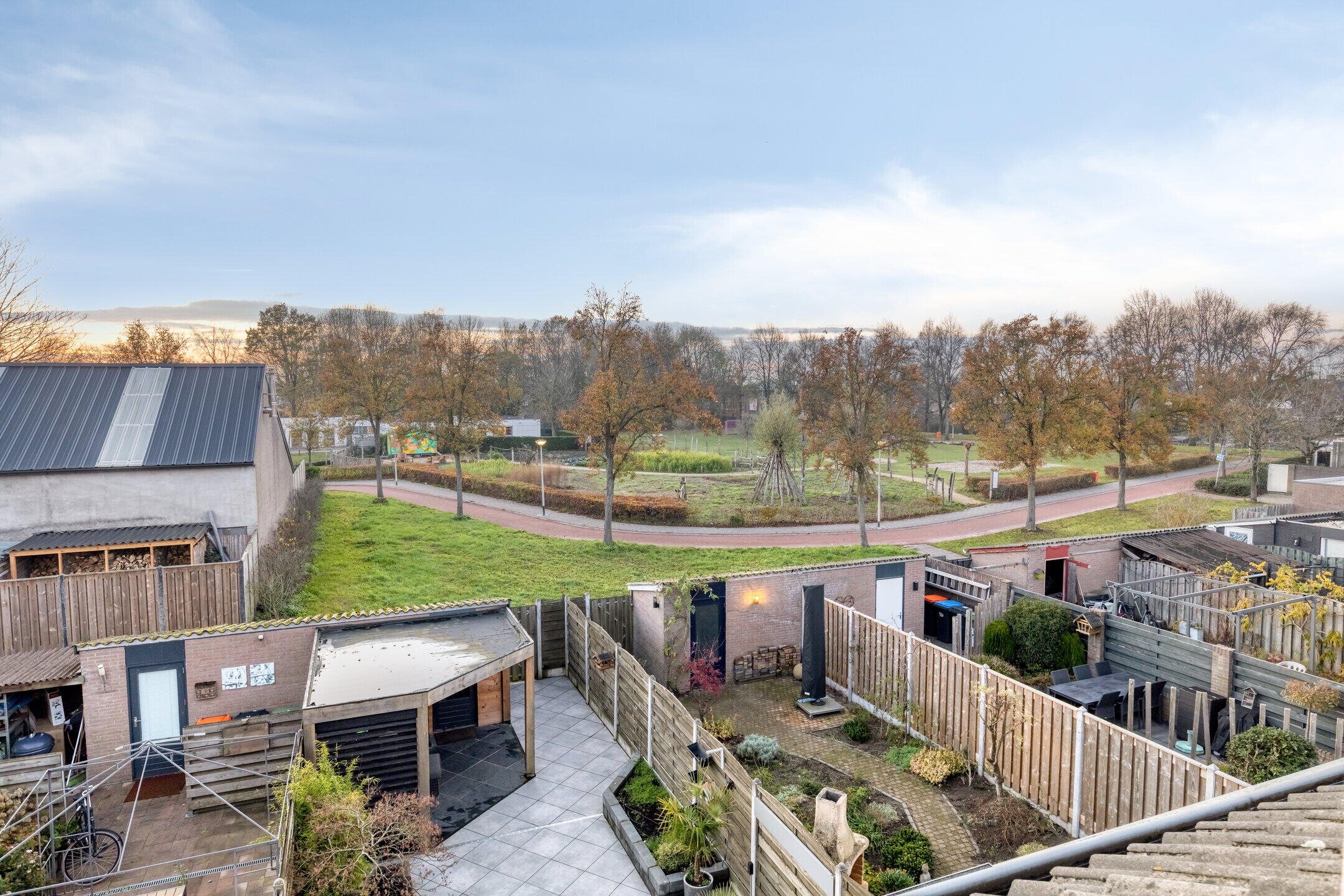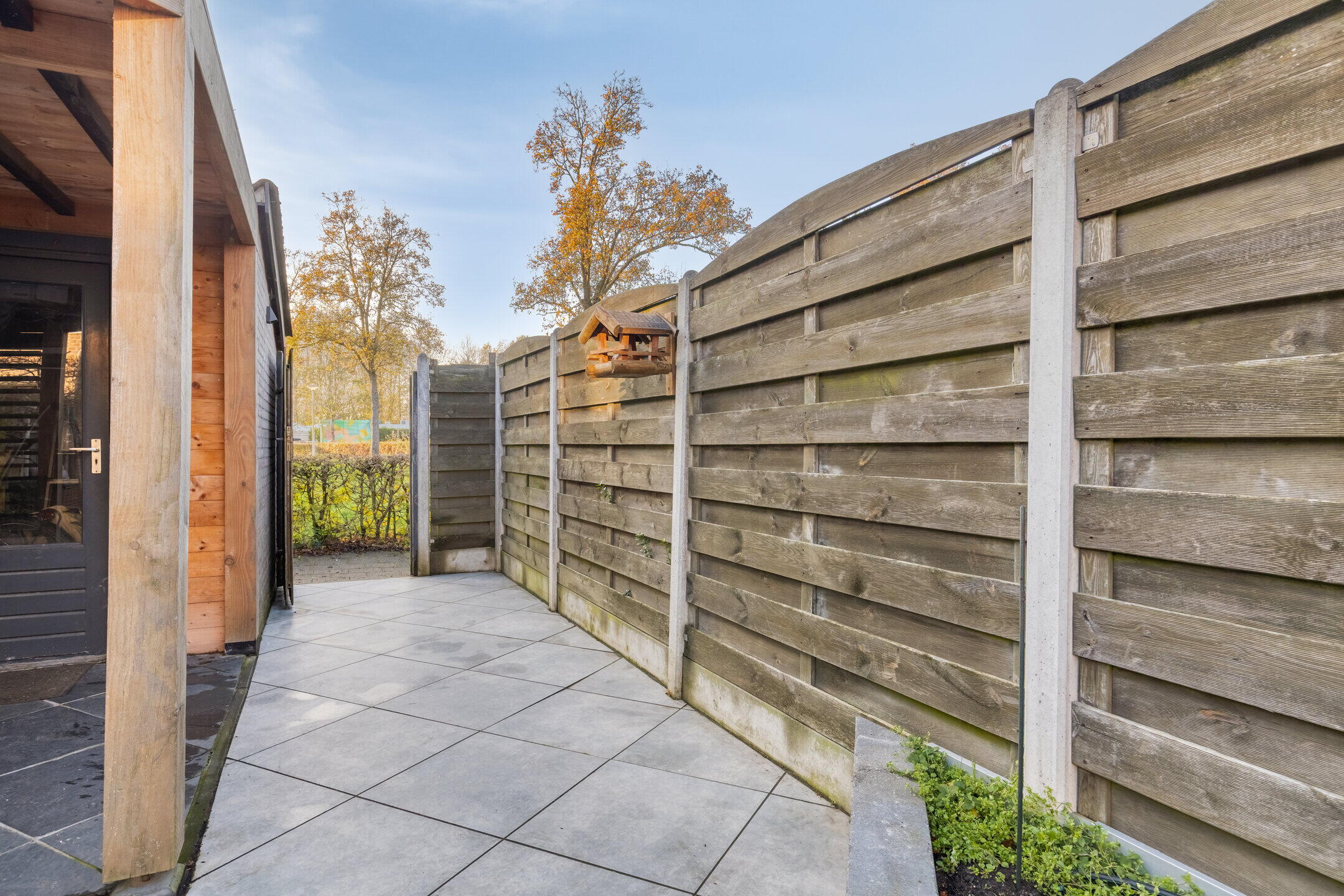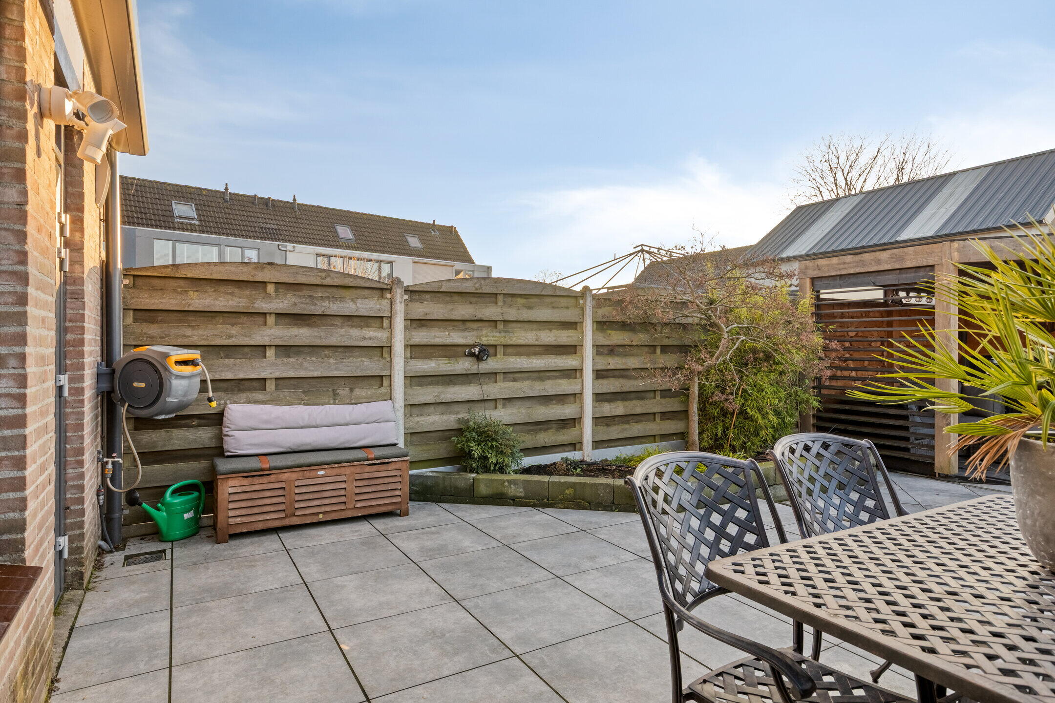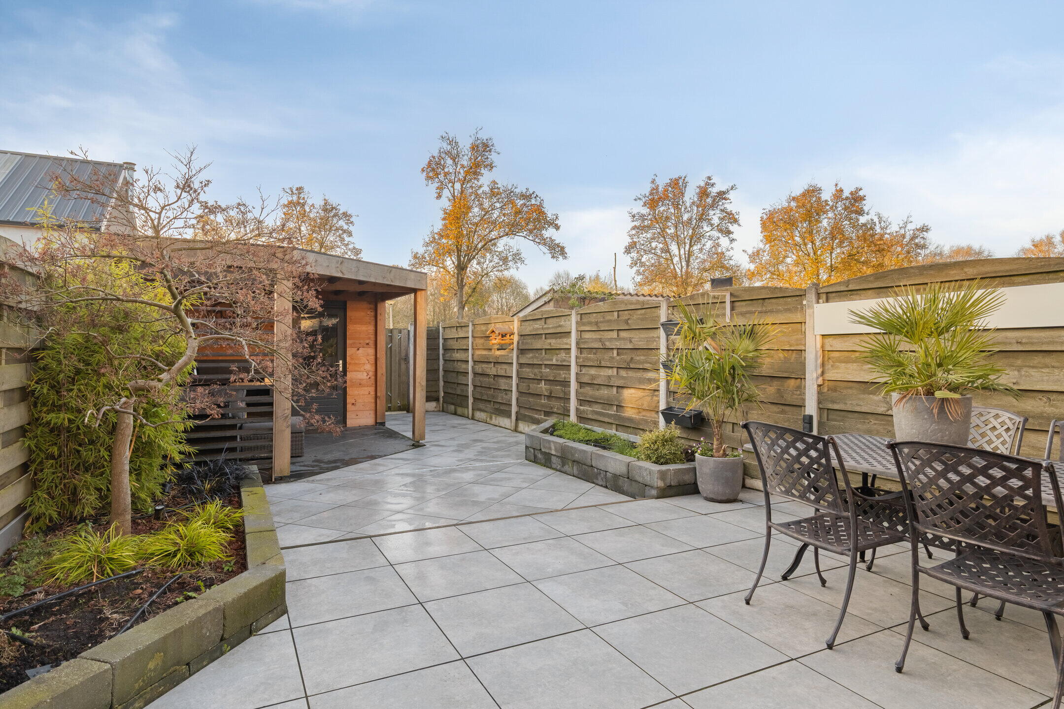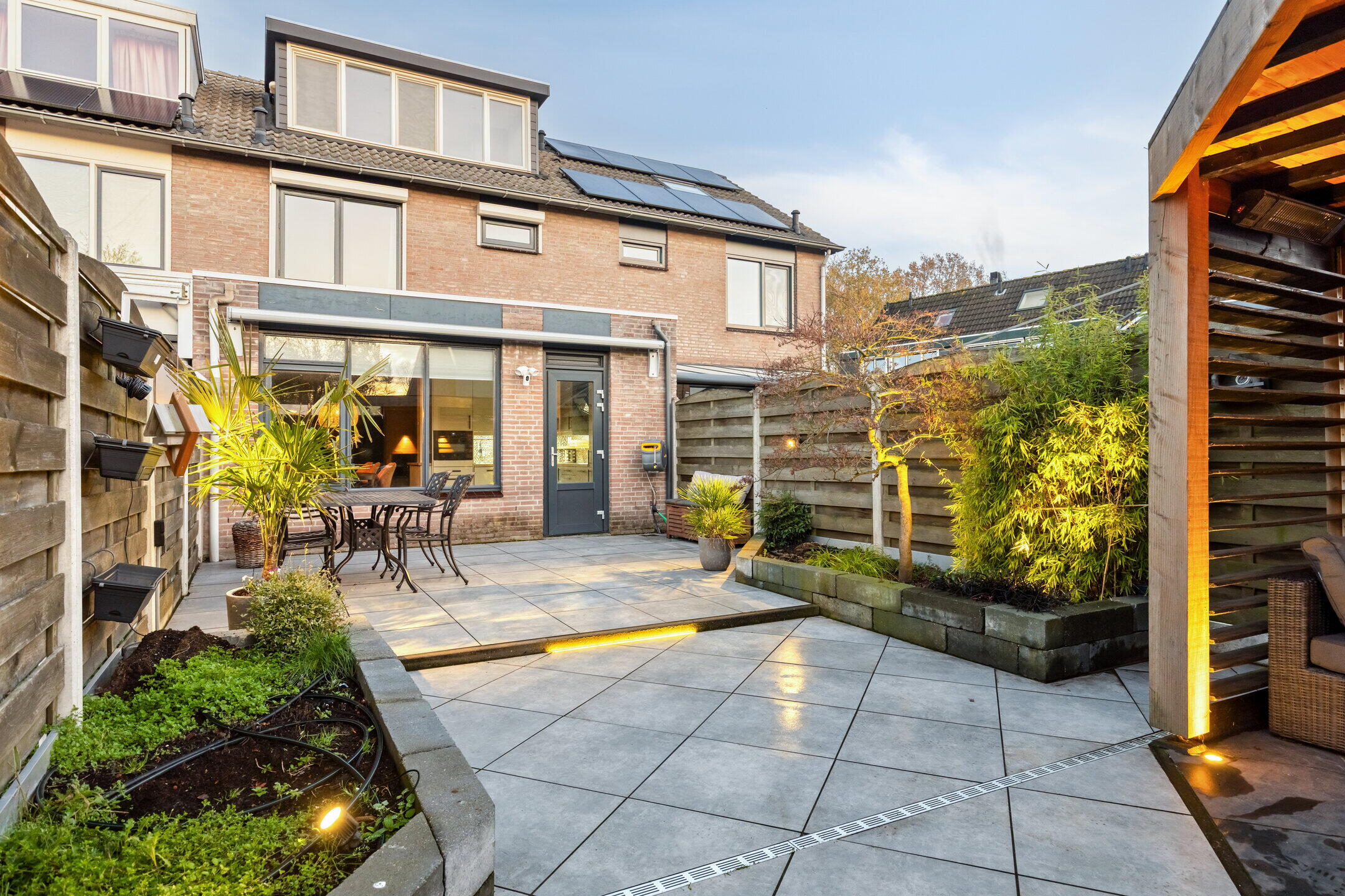 Wat een heerlijke tuin! Deze is netjes aangelegd met zowel groen als bestrating en biedt een prachtige overkapping — perfect voor lange zomeravonden of knusse herfstdagen op de loungebank. Achter in de tuin vind je nog een extra berging voor fietsen of tuingereedschap. De achterom maakt het helemaal af: praktisch en comfortabel.