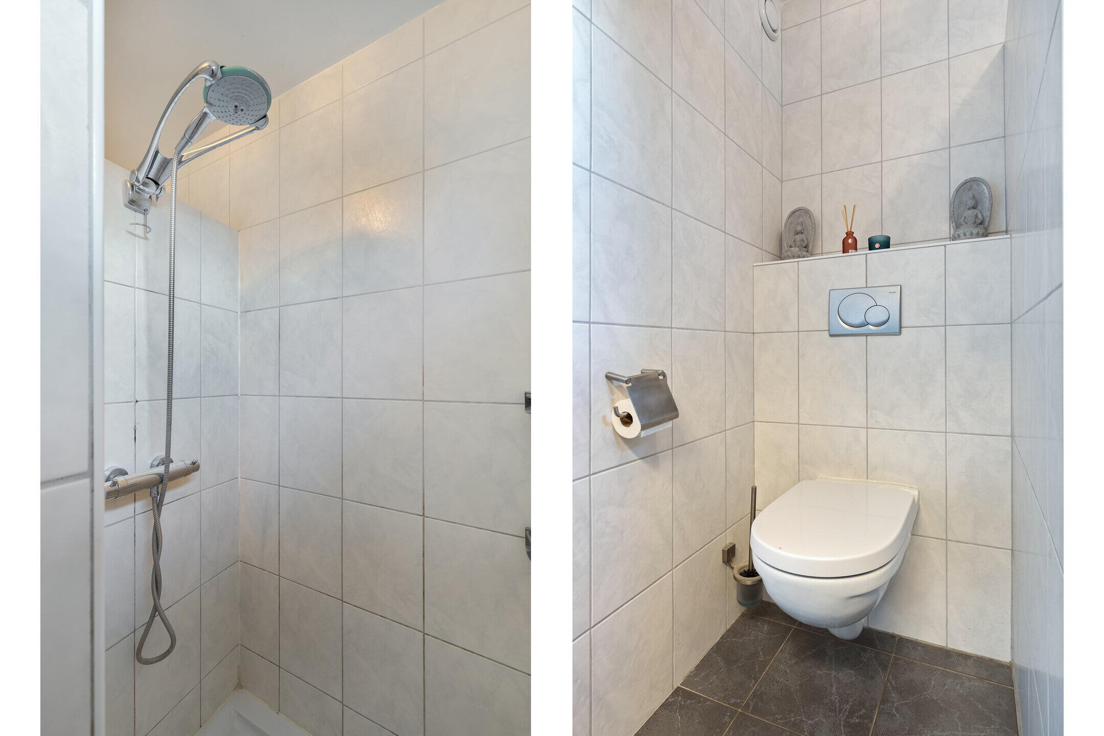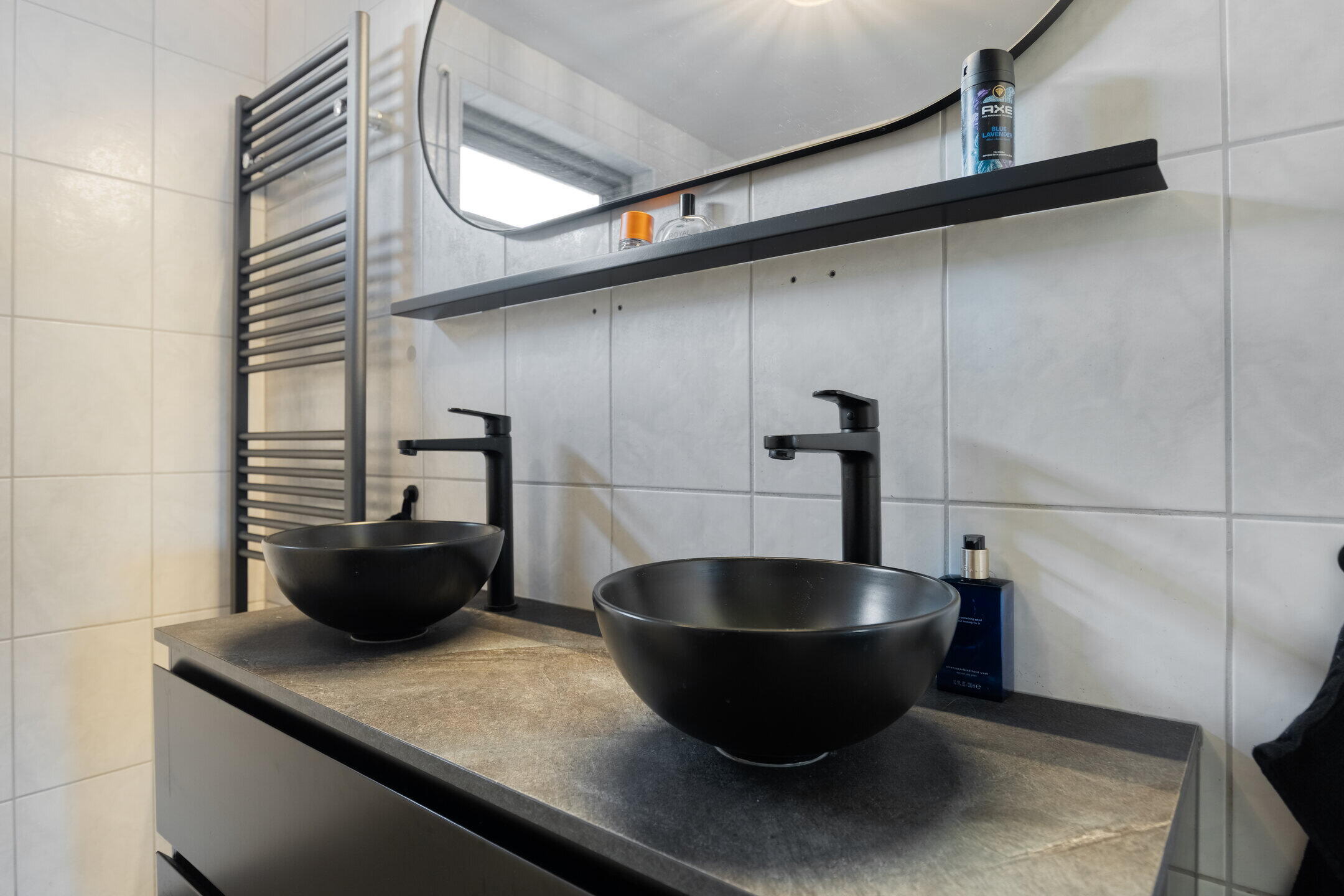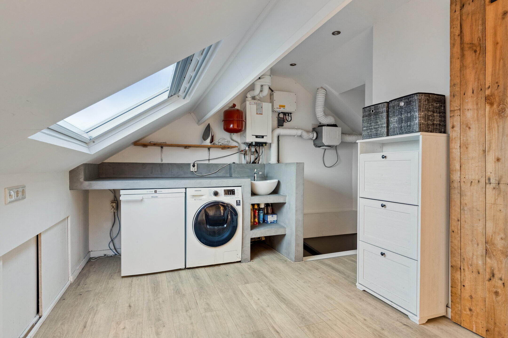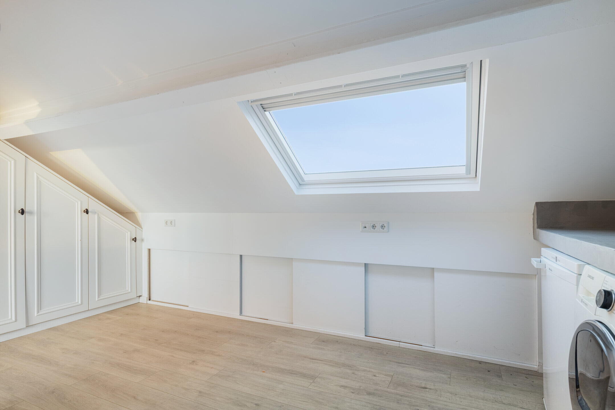 Op de eerste verdieping zijn drie ruime slaapkamers, allemaal met veel lichtinval en een verzorgde afwerking. De badkamer is modern en praktisch ingedeeld, voorzien van een ruime inloopdouche, toilet en een stijlvol wastafelmeubel. De tweede verdieping is een waardevolle toevoeging: strak afgewerkt en voorzien van een vierde slaapkamer met groot dakraam. De overloop is handig ingericht met een houten schuifdeur, waarachter je de wasruimte en extra opbergruimte vindt.