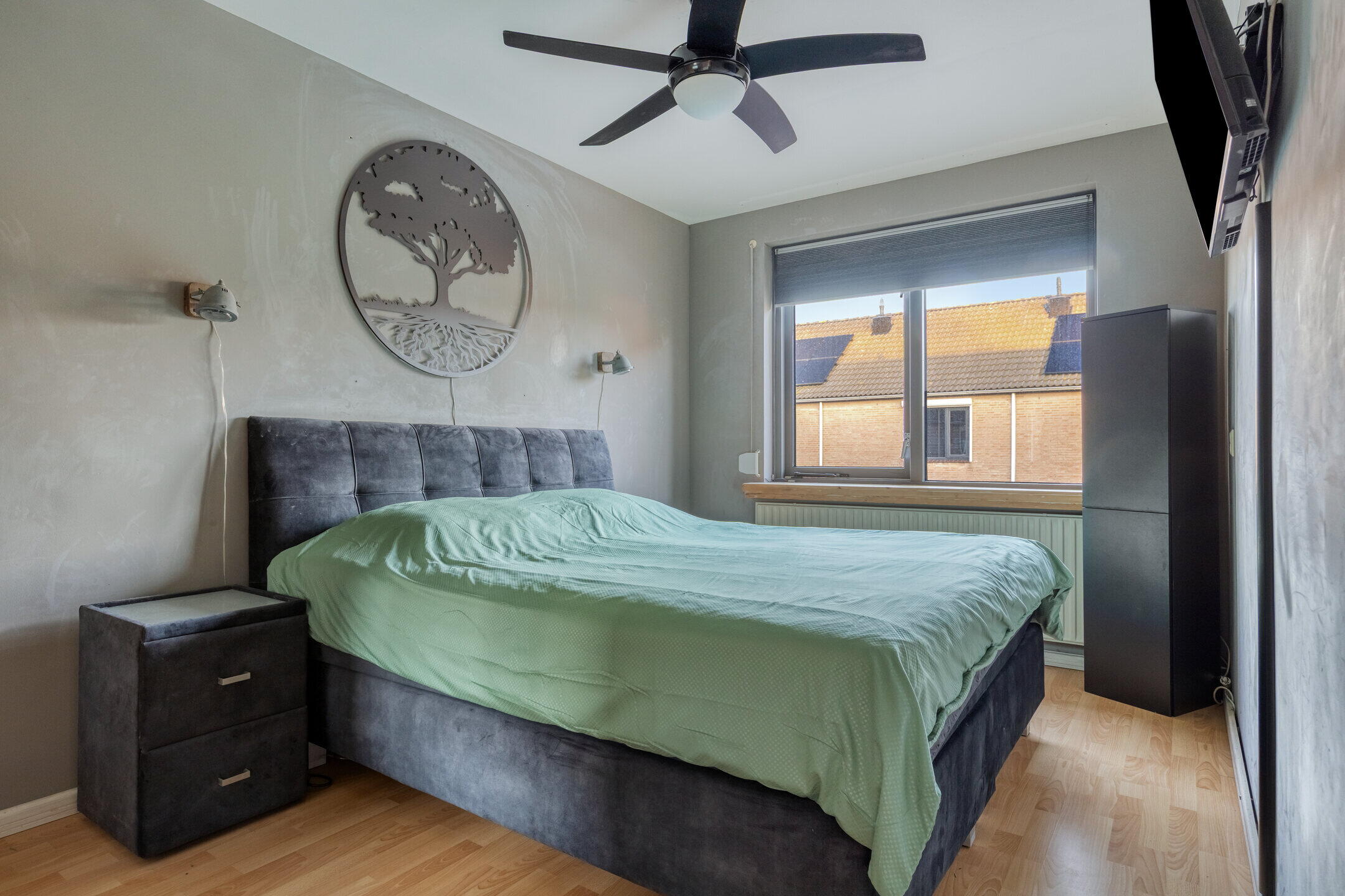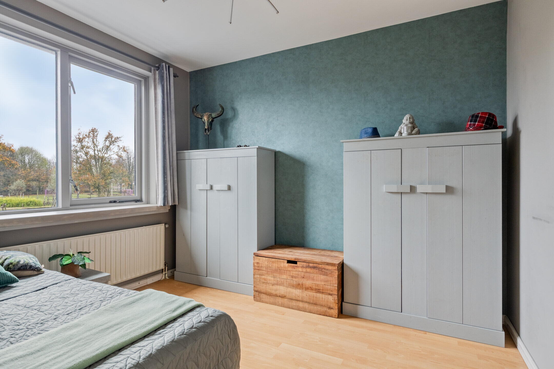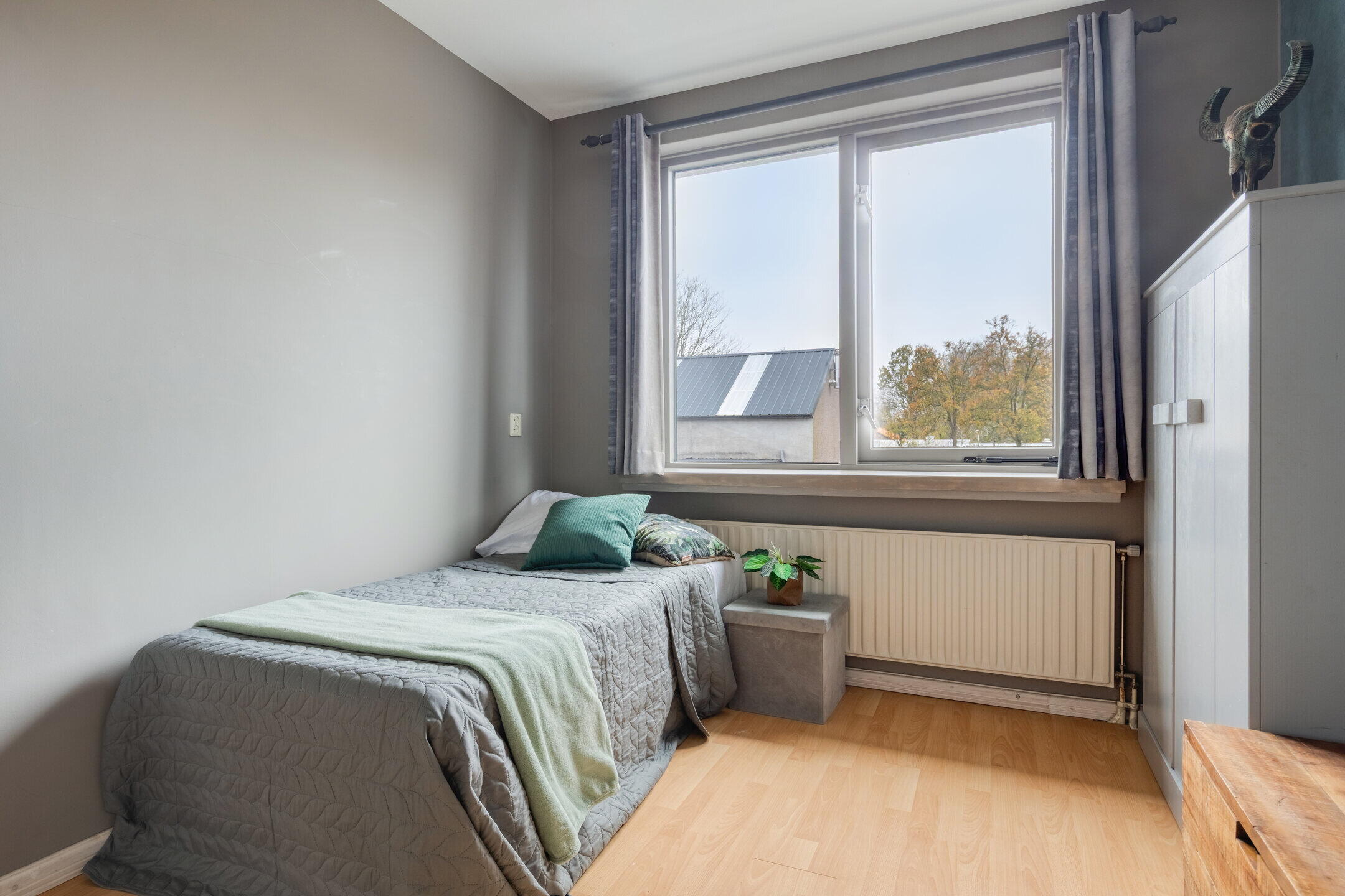 Op de eerste verdieping zijn drie ruime slaapkamers, allemaal met veel lichtinval en een verzorgde afwerking. De badkamer is modern en praktisch ingedeeld, voorzien van een ruime inloopdouche, toilet en een stijlvol wastafelmeubel. De tweede verdieping is een waardevolle toevoeging: strak afgewerkt en voorzien van een vierde slaapkamer met groot dakraam. De overloop is handig ingericht met een houten schuifdeur, waarachter je de wasruimte en extra opbergruimte vindt.